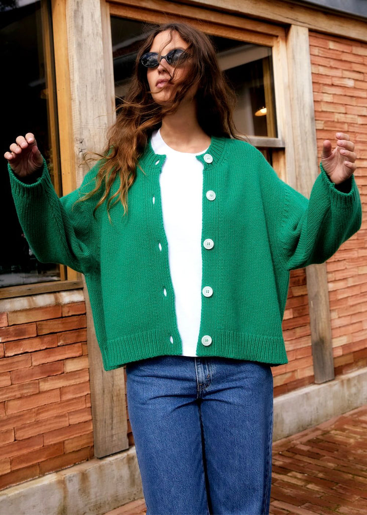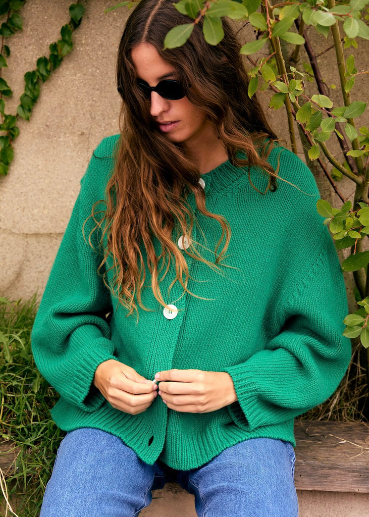 Le cardigan Emma a une coupe oversize. Choisissez votre taille habituelle.